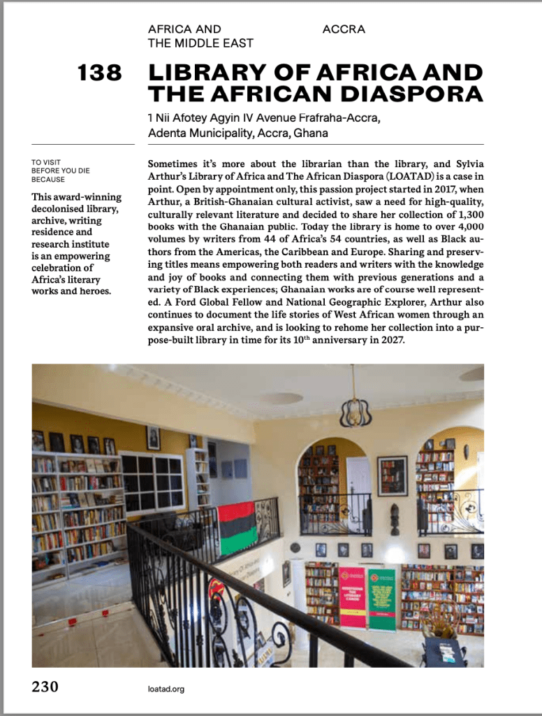 The book features “the ultimate list of the world’s most beautiful libraries,” of which LOATAD is one, repping Africa along with 10 other libraries on the continent: